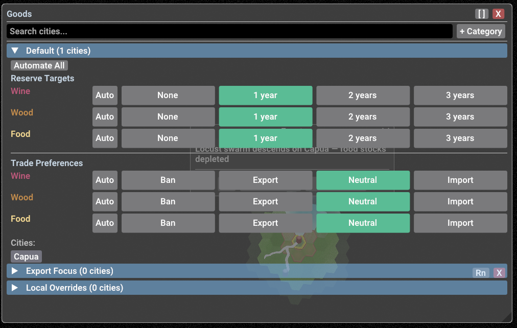 - Bilateral Barter Economy: A deep resource system where cities trade iron for food or wood for tools based on local supply and demand. No magic global markets, only physical exchange.
