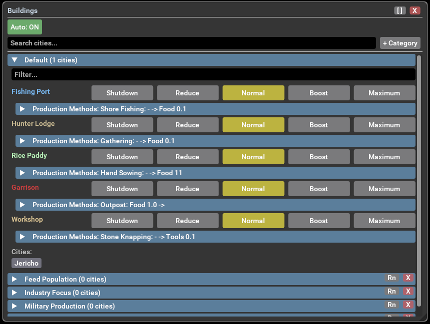 - 5 climate-specific farm types, 6 mine types, workshops, and barracks